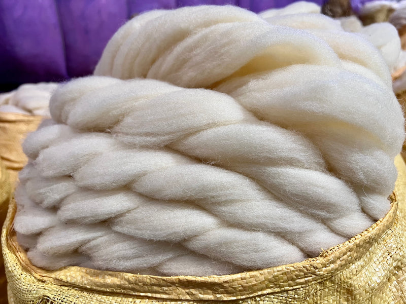 the wool is gently cleaned with gathered rainwater to removed impurities and carded so the fibers are aligned for strength and consistency.