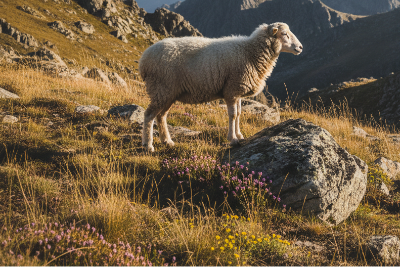 raised wool from sheep in natural grazing environment in Portugal.
