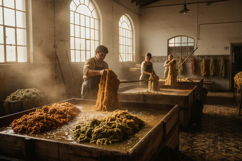 color applied with precision and care using non-toxic dyes under strict environmental standards, with no harmful discharge into waterways.