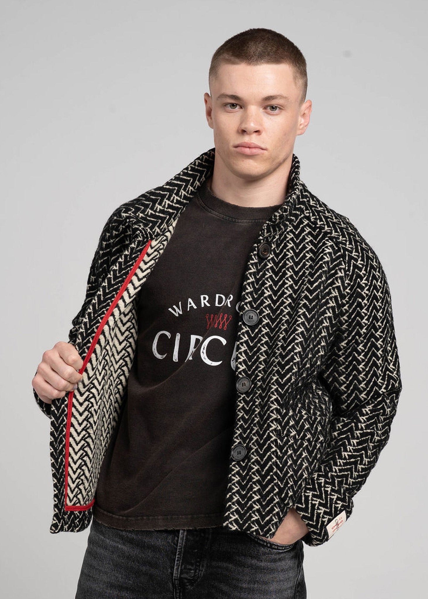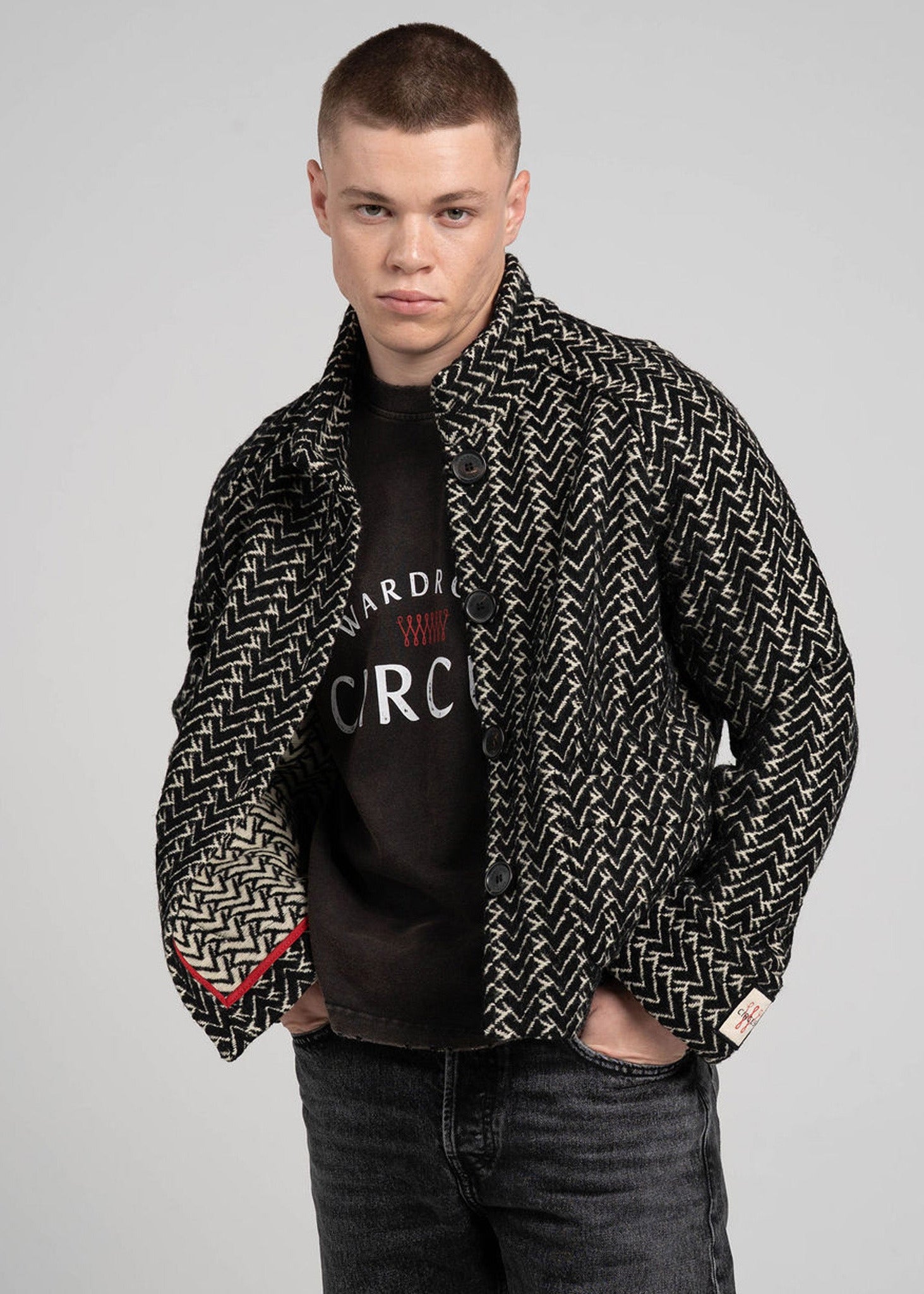 One of our signature pieces, the Short Box Jacket V7 is a structured wool jacket crafted from an oversized herringbone weave. The dense fabric has been meticulously woven on vintage looms, meaning our patterns are both unique and enduring, standing the test of time. Our wool offers warmth and durability as well as unparalleled breathability and comfort, fit for the everyday. This natural fabric is a commitment to both your closet and the environment.